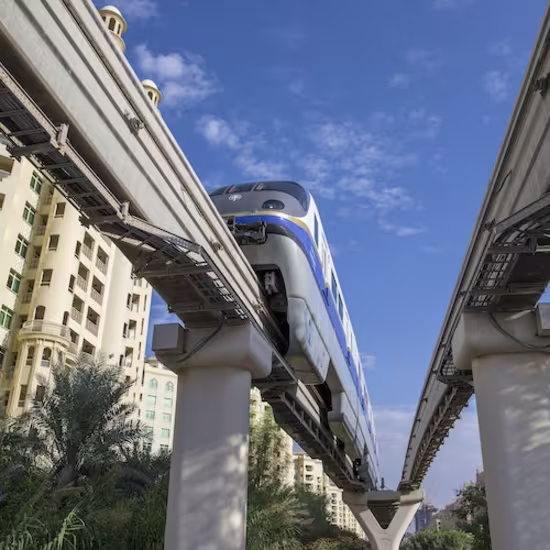 Description: The Palm Monorail runs from the Palm Gateway Station to Atlantis, providing a scenic view of the Palm Jumeirah along the way.